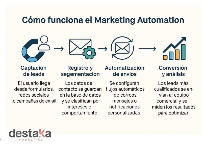 A partir de esos datos, las herramientas de automatización gestionan de forma inteligente la segmentación y el targeting, identificando al público ideal y enviando mensajes personalizados en el momento oportuno.