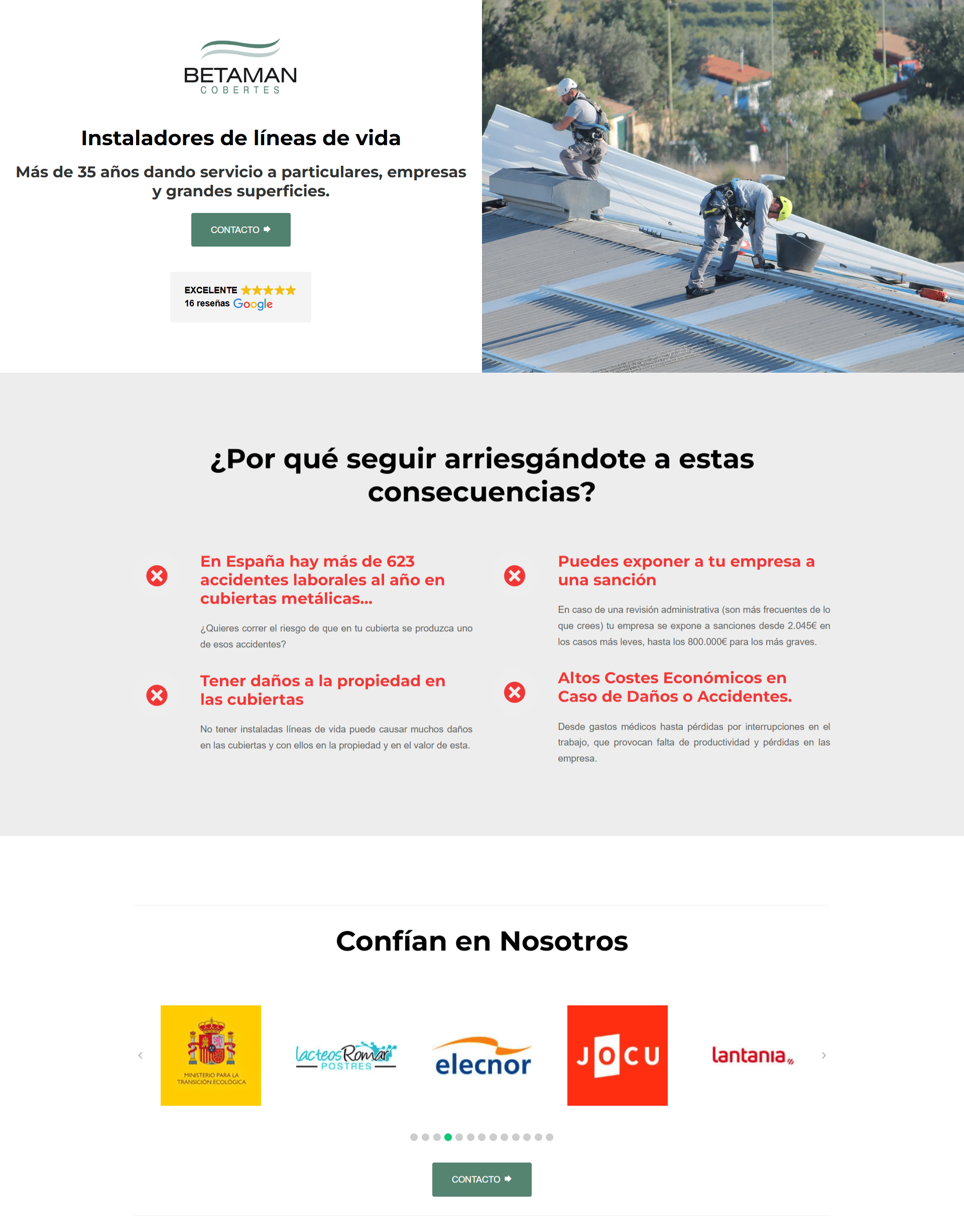 Betaman Cobertes es una empresa de instalaciones de cubiertas, líneas de vida (de seguridad) y trabajos en altura, que opera en toda la Comunidad Valenciana, con una facturación superior al Millón de €uros anual.